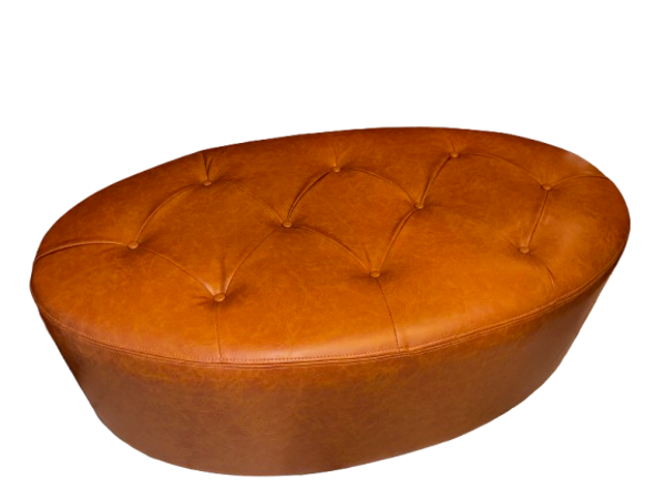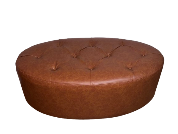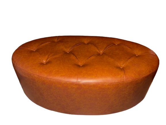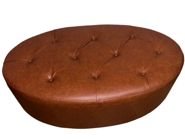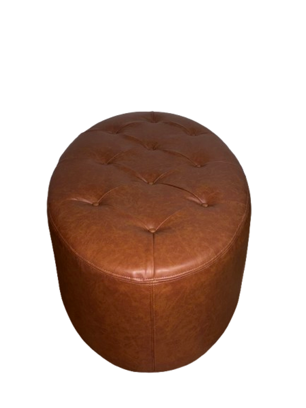 Add a touch of sophistication to your home with this stylish, tufted oval ottoman. Upholstered in rich, warm brown faux leather, this ottoman exudes timeless elegance while offering practical functionality. The smooth, tufted design features subtle button accents, adding texture and depth to the sleek, minimalist shape. With its spacious surface, this ottoman serves as a versatile piece, perfect for use as a footrest, extra seating, or even as a coffee table when topped with a tray. Its sturdy construction ensures durability, while the soft cushioning enhances comfort. Ideal for living rooms, lounges, or bedrooms, this ottoman complements both modern and traditional décor styles with its refined yet cozy appeal.